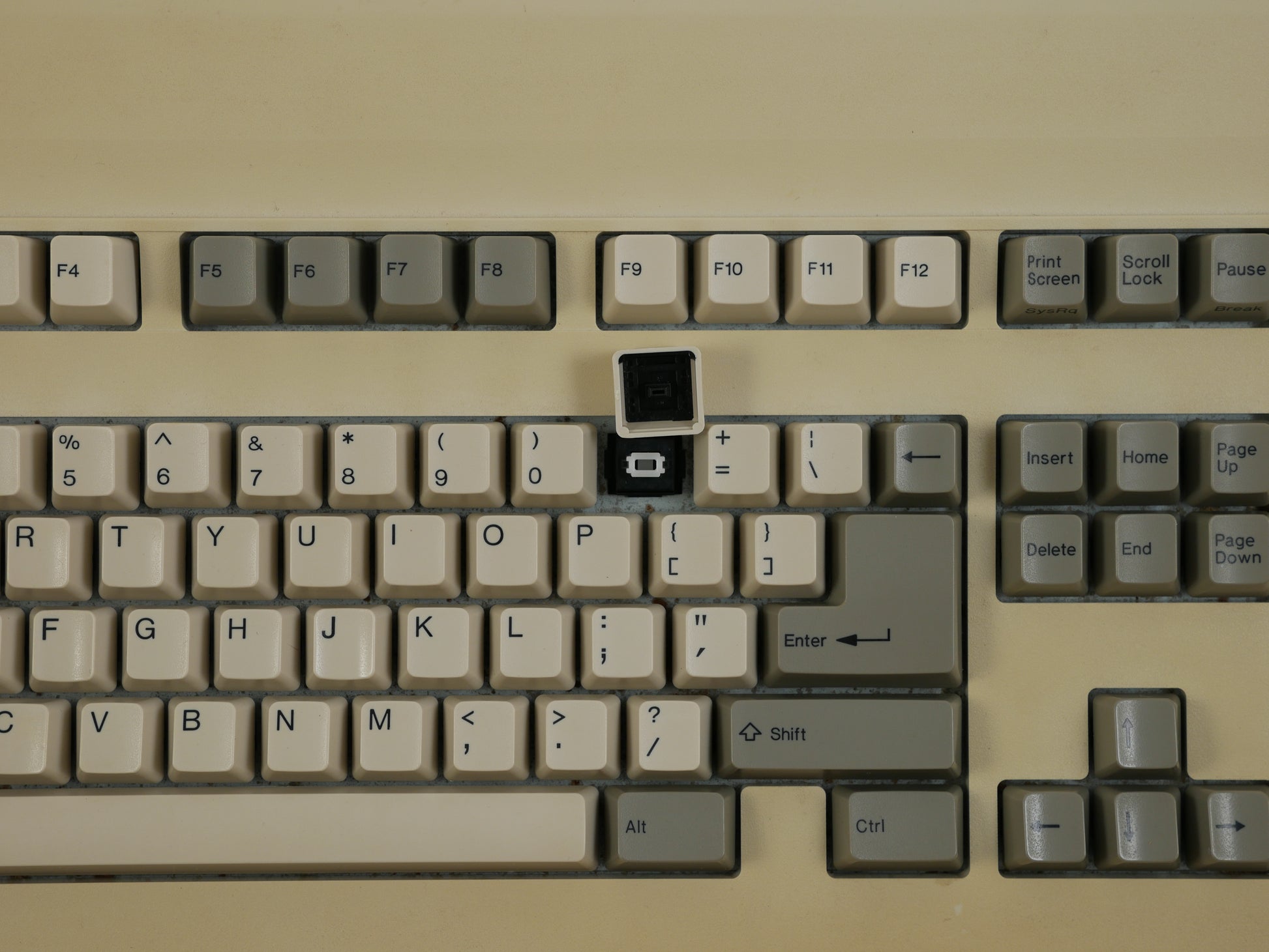 Toshiba AT 101 keyboard rare to see int BAE layout. The cable is stretched and will need to be recoiled.